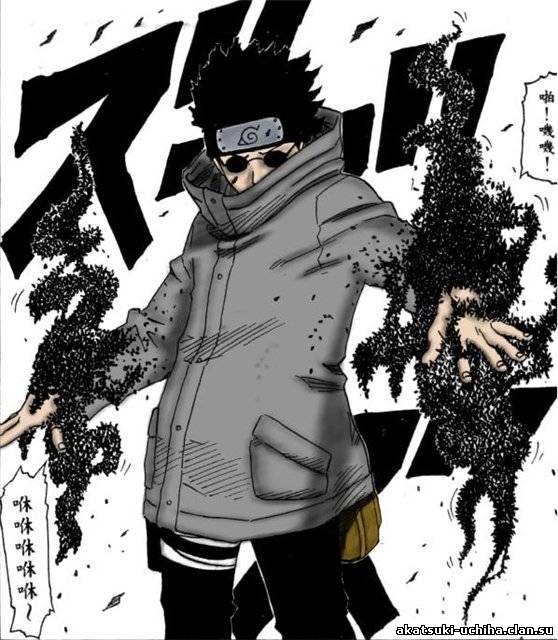 Абураме Шино один из наиболее таинственных персонажей. При рождении в его тело поместили Кикачу (Жуки Разрушения), в симбиозе с которыми живет каждый член клана. Эти жуки выполняют любую волю хозяина,взамен питаясь его чакрой. Одежда Шино довольно странная. Его куртка прикрывает нижнюю часть лица, а также он постоянно носит непрозрачные очки. Познее к его одежде добавится капюшон, покрывающий его голову. Из-за этого Наруто не признает его с первого взгляда.